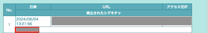 - 「検出されたシグネチャ」(シグネチャID)をコピーしておく