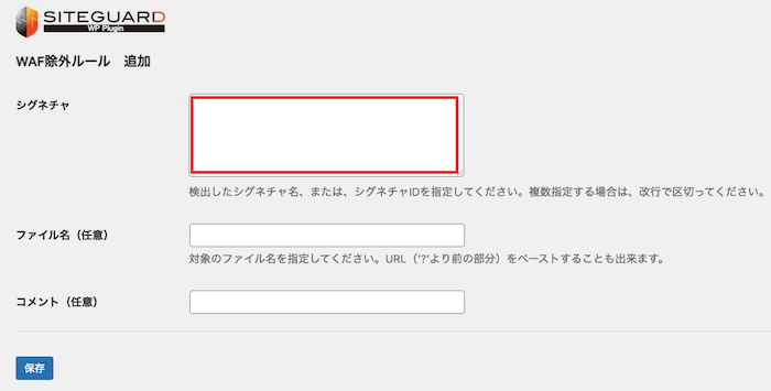 シグネチャとは、不正な通信や攻撃を識別するためのWAFのルールです。