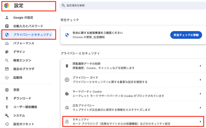 設定>プライバシーとセキュリティ>セキュリティ>詳細設定>セキュア DNS を使用する>DNS プロバイダを選択>Google (Public DNS)